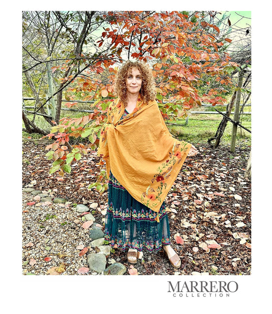 Ochre Embroidered Shawl